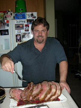 The proud chef carving up the prime rib.