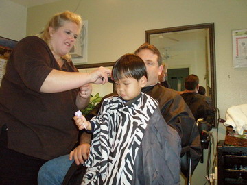 Tyler's hair grows so fast. He doesn't mind getting it cut as long as he gets some candy afterwards.